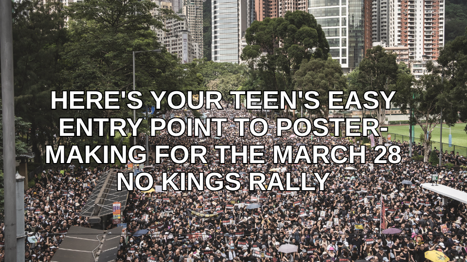 Here's your teen's easy entry point to poster-making for the March 28 No Kings Rally